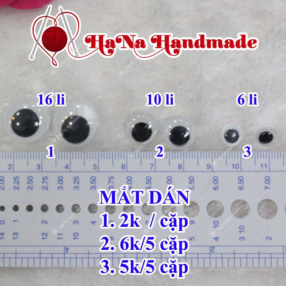 Mắt dán đảo thú bông, bao gồm các size: 4, 6, 8, 10, 12, 14, 16mm1. 5 cặp 16mm: 10k