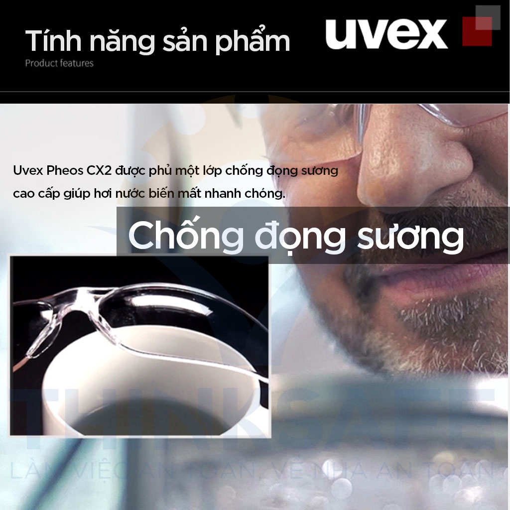 Mắt kính bảo hộ Uvex Thinksafe, kính bảo vệ đa năng, đọng sương, tia uv, chống bụi đi đường, chính hãng và cao cấp - CX2