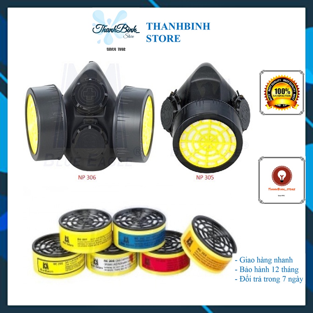 Mặt nạ chống bụi mịn và phòng khí độc công nghiệp gồm: 1 Mặt nạ phòng độc BB 306 và Phin lọc than hoạt tính BB 203. thích hợp sử dụng trong môi trường ô nhiễm độc hại, nhiều bụi như ngành sơn, hàn, xì, ngành vận tải, xây dựng, ngành hóa chất, dung môi, thủ công mỹ nghệ, dệt may, phun thuốc diệt côn trùng, thuốc trừ sâu, phân bón...Gồm 2 loại : 1 lõi và 2 lõi lọc than hoạt tính BB 203
