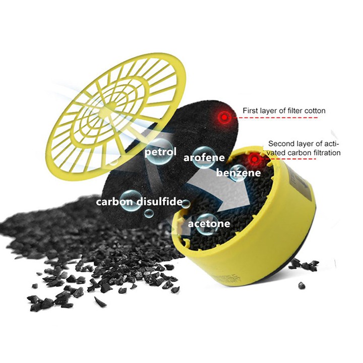- Than hoạt tính trong hộp lọc có thể được gỡ bỏ và cài đặt dễ dàng, thuận tiện với người đeo.