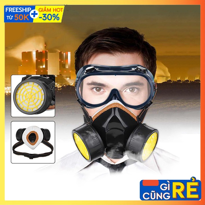 Mặt nạ phòng độc phin lọc đôi, hai van thở giúp lọc không khí ô nhiễm từ môi trường bụi bẩn khi đi xe ngoài đường, lọc chất độc khi phun thuốc trừ sâu.