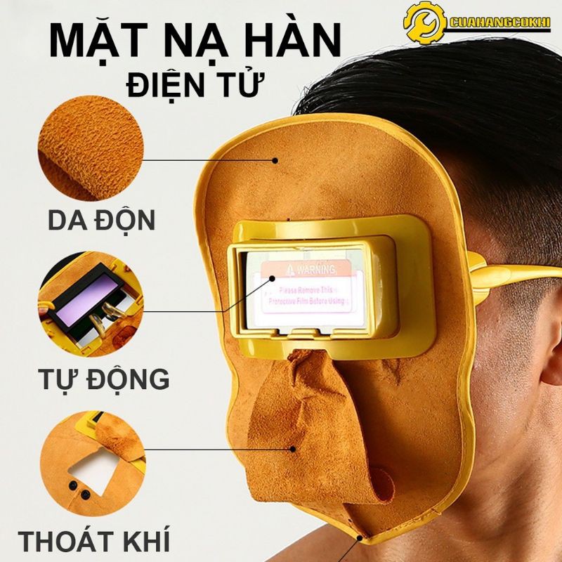 Mặt Nạ Hàn Điện Tử - Kính Hàn Điện Tử Da Lộn Cao CấpĐược làm từ chất liệu cao cấp, có khả năng tránh được tia UV,là sản phẩm bảo hộ tốt hiện nay. Sở hữu tính năng nổi bật, sản phẩm sử dụng cảm biến ánh sáng khi hàn kính sẽ tối lại như kính hàn và sau khi hàn xong kính lại sáng ra và nhìn rất rõ để làm việc. Nhờ đó, mang lại hiệu quả làm việc cao mà không ảnh hưởng đến sức khỏe. còn có ưu điểm là tránh được khói hàn và không gây đau mắt cho người sử dụng dù hàn liên tục nhiều giờ đồng hồ. Đặc biệt, có khả năng cảm biến ánh sáng, ngay cả khi các bạn đeo kính cũng có thể hàn liên tục được mà vẫn nhìn thấy rõ vô cùng tiện lợi.