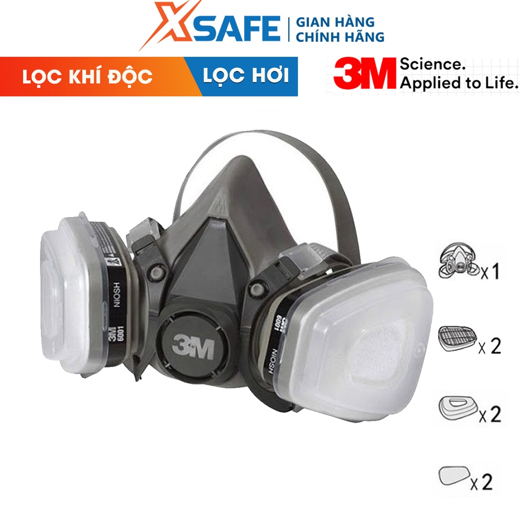 Mặt nạ phòng độc 3M 6200-6001-5N11-501 chống bụi, chống độc, dùng phun sơn, phun thuốc - Chính hãng 3M - xsafe