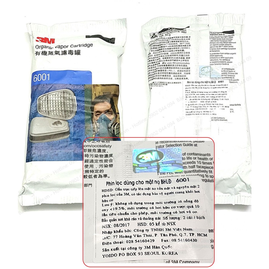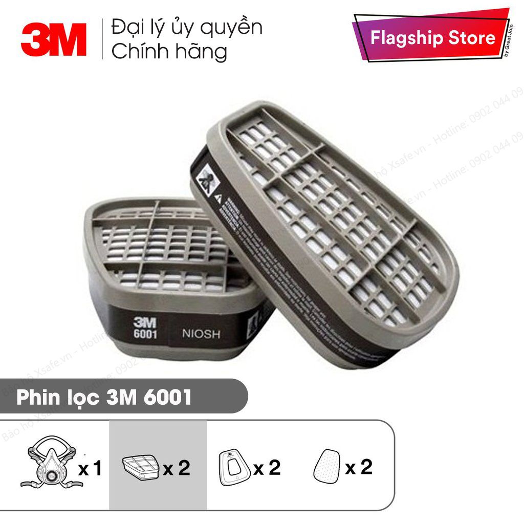 BỘ SẢN PHẨM BAO GỒM: MẶT NẠ 3M 6200 + 2 PHIN 3M 6001 + 2 TẤM LỌC BỤI 3M 5N11 + 2 NẮP NHỰA 3M 501