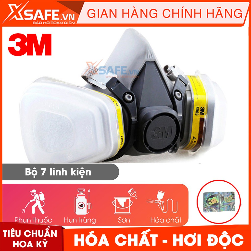 BỘ MẶT NẠ PHÒNG ĐỘC 3M 6200 7 MÓN - MẶT NẠ CHỐNG ĐỘC CHỐNG BỤI - MẶT NẠ PHUN SƠN PHUN THUỐC HÓA HỌCBộ sản phẩm bao gồm: 1 mặt nạ 3M 6200, 2 phin lọc 3m 6003, 2 tấm lọc bụi 5N11, 2 nắp nhựa 3M 501