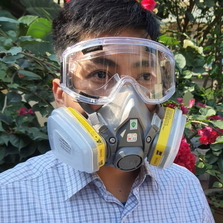 Giới thiệu Mặt Nạ Phòng Độc 3M 6200 Phin Lọc 6003 Hàn Quốc, Kèm Kính Dẻo Chống Hóa Chất