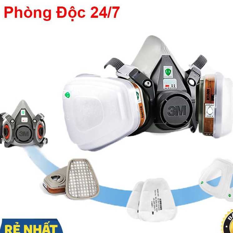 Nhà cửa & Đời sống > Dụng cụ & Thiết bị tiện ích > Găng tay, kính bảo hộ & mặt nạ || Bộ mặt nạ phòng độc 3M 6200 và phun thuốc sâu, phòng độc khói đám cháy chung cư, chống bụi mịn PM2.5Còn hàng