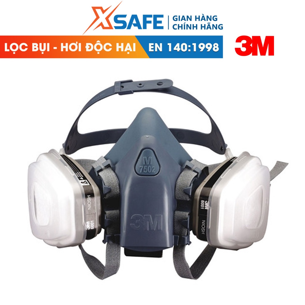 Bộ mặt nạ phòng độc 3M 7502-6001-5N11-501 7 món, lọc bụi, dùng phun sơn, chống hóa chất - chính hãng - xsafe