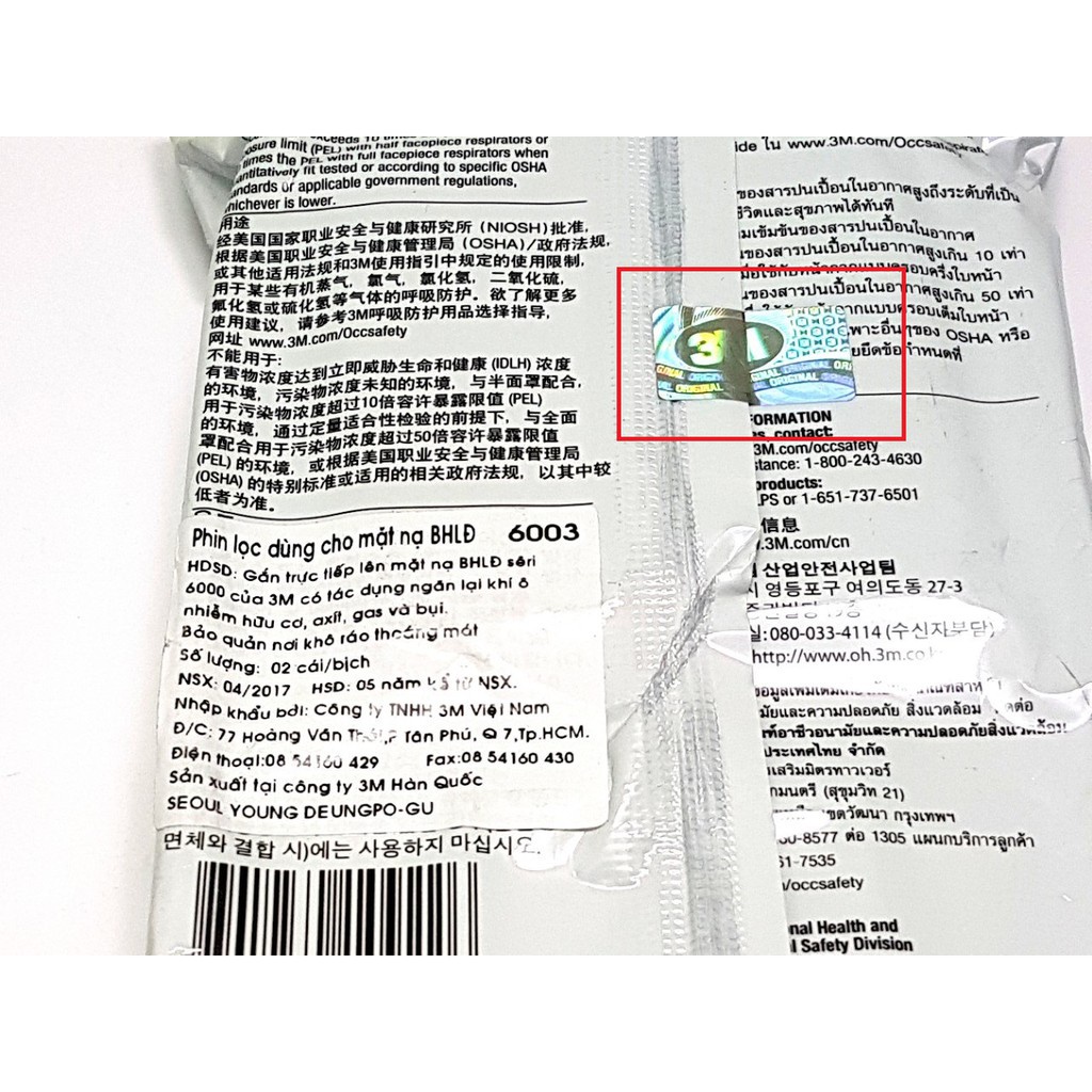 Phin lọc 3M 6003 được tổ chức NIOSH xếp loại là phin lọc hơi hữu cơ, vô cơ