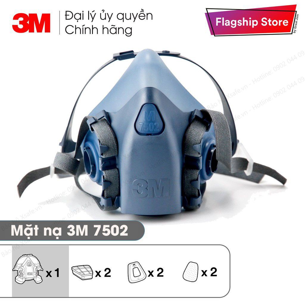 BỘ MẶT NẠ PHÒNG ĐỘC 3M 7502 7 MÓN - MẶT NẠ CHỐNG ĐỘC CHỐNG BỤI - MẶT NẠ PHUN SƠN PHUN XỊT HÓA CHẤTMặt nạ phòng độc 3M 7502 size M. Cấu tạo 2 phin lọc thiết kế chế độ đeo "dropdown" tiện lợi. Tương thích: kính chống hóa chất, chụp tai, series tấm lọc/phin lọc 3M 2000, 2200, 6000, 5000.