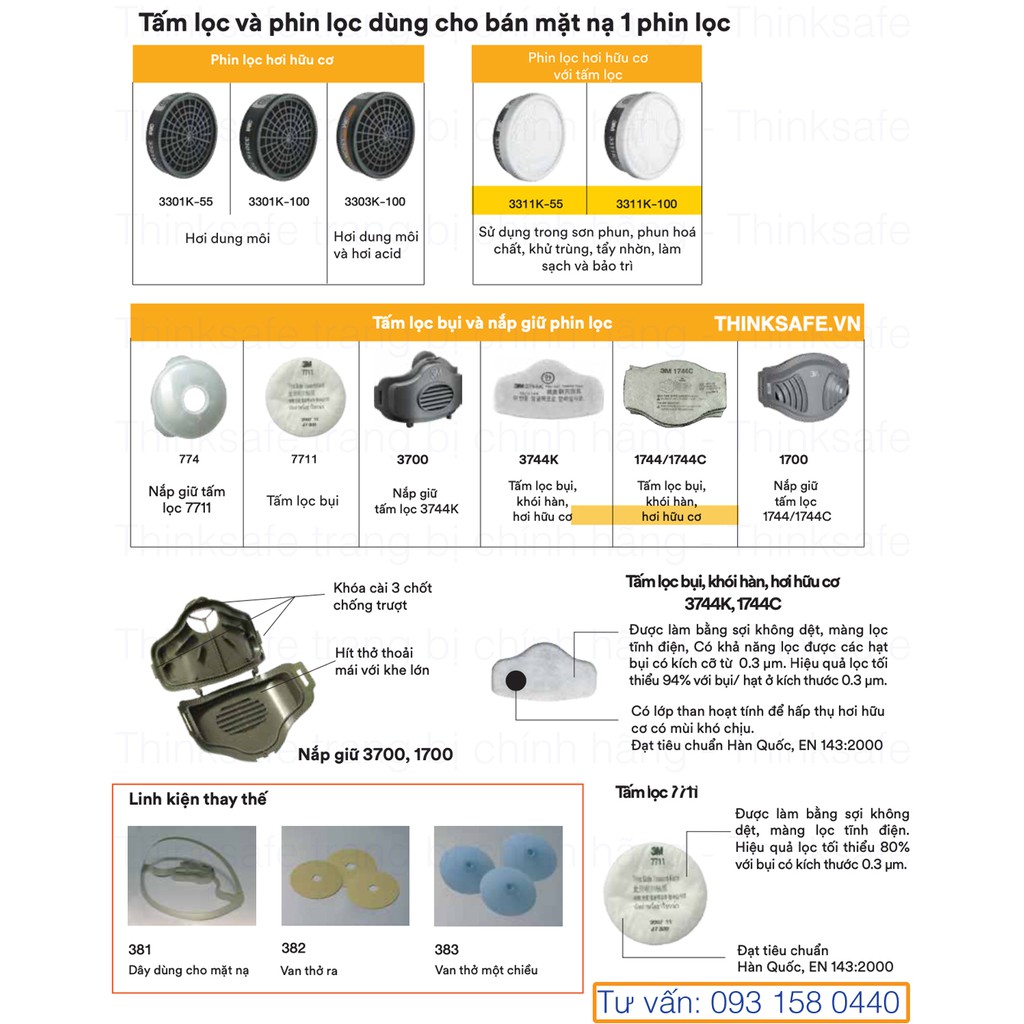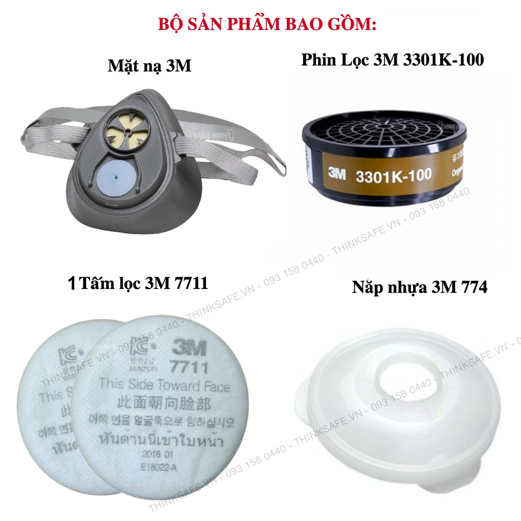 - Thành phần phin lọc 3M 3301k-100 có than hoạt tính có tác dụng lọc các khí độc hại, không làm ảnh hưởng tới người sử dụng. Phần màng poly thì có tác dụng chủ yếu để lọc hơi độc và các loại hạt bụi bẩn, kể cả những hạt bụi rất nhỏ. Chống hoá chất, chống độc, phun sơn, phun xịt thuốc sâu, hữu cơ/ACID.