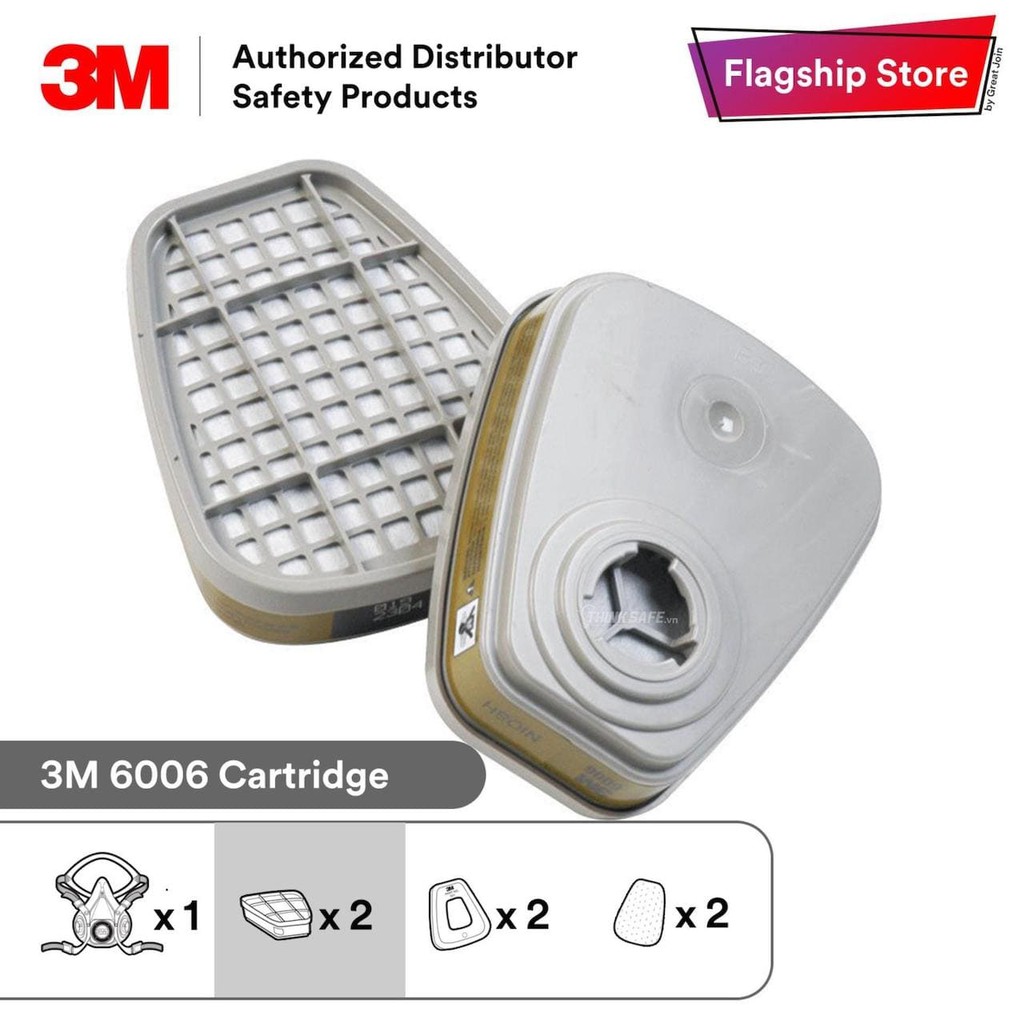 Mặt nạ phòng độc 3M Thinksafe, chống hoá chất, chống độc, phun sơn, phun xịt thuốc sâu, axit, vô cơBộ mặt nạ phòng độc sử dụng phin lọc 3m 6006 có khả năng lọc: Amoniac, Clo, Chlorine dioxide, Formaldehyde, Hydro clorua, Hydro Florua, Hydrogen sulfide, Methylamine, Hơi hữu cơ, Lưu huỳnh đioxit