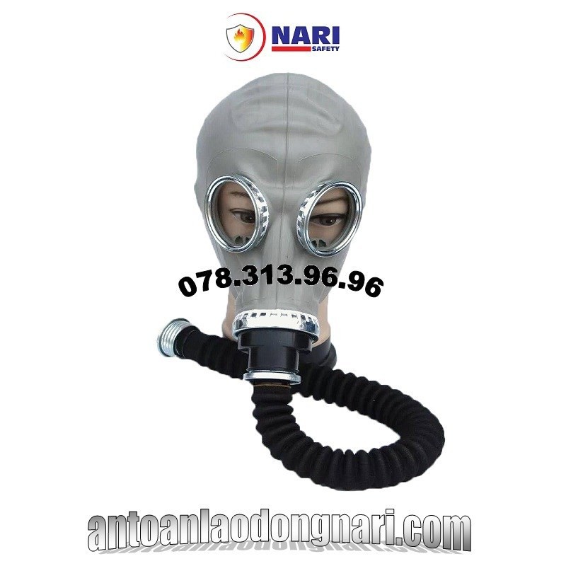 Mặt nạ phòng độc có vòi được thiết kế giúp che phủ toàn bộ đầu và khuôn mặt.