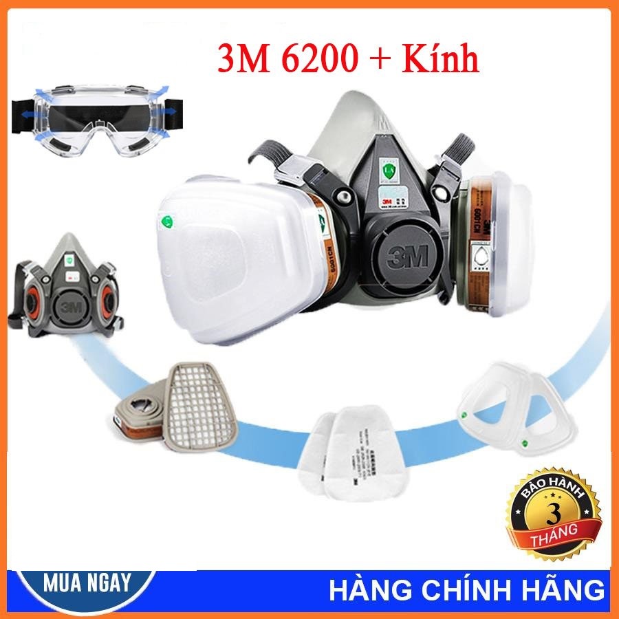 Mặt Nạ Phun Thuốc 3M 6200, Mặt Nạ Phòng Độc 3M 8 Chi Tiết Sử Dụng Phun Sơn PU, Chống Bụi Mịn, Mùi Thuốc Sâu
