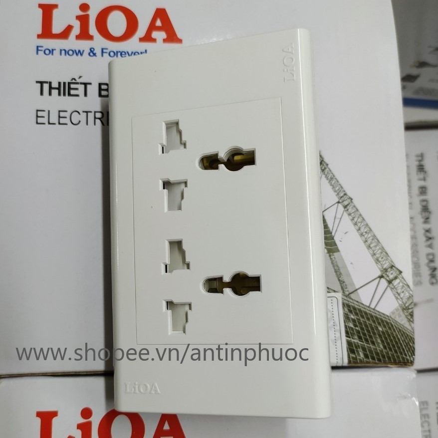 Sản phẩm là mặt ổ cắm điện 2 ổ loại 3 chấu đa năng LIOA .Shop An Tín Phước cung cấp đến quý khách ổ cắm điện tâm tường với thương hiệu nổi tiếng LIOA .