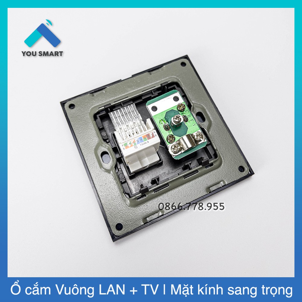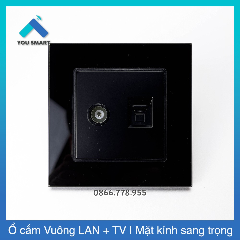 Thiết Bị Điện Gia Dụng > Mạch điện & Phụ tùng > Ổ cắm điện & Dây nối || Mặt ổ cắm Vuông kính cường lực LAN + TVCòn hàng