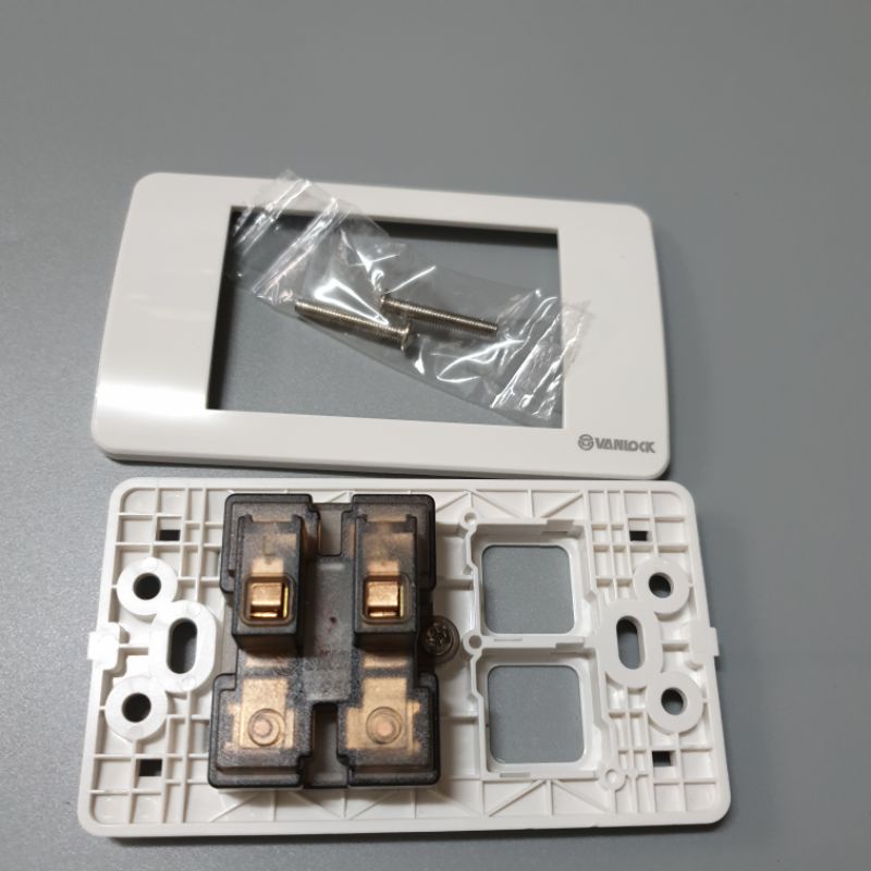 + Đế công tắc làm bằng nhựa Polycarbonate chống cháy - nguyên chất ( không có mùi khét như nhựa phế liệu, tái sinh)