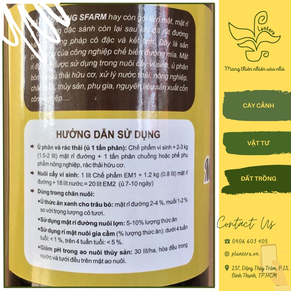 Nhà cửa & Đời sống > Làm vườn > Phân bón || Mật Rỉ Đường Nguyên Chất Sfarm 1Lit - Chế Phẩm Bảo Vệ Thực Vật - Chế Phẩm Sinh HọcCòn hàng