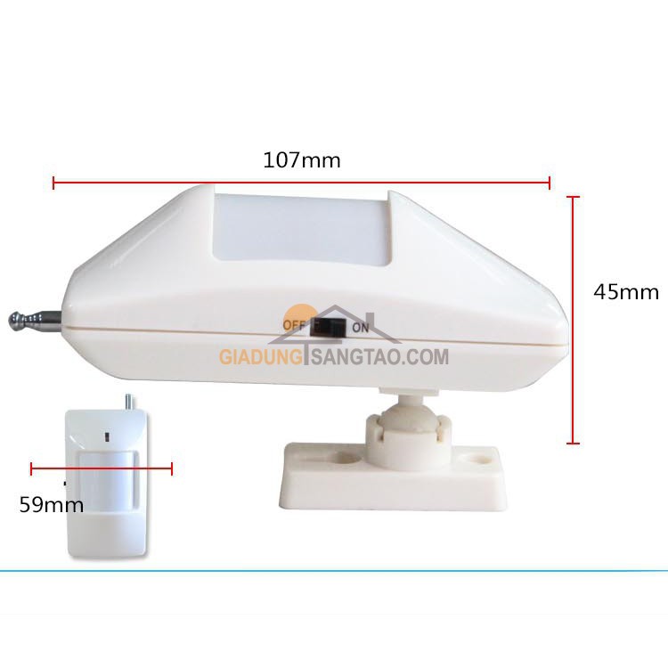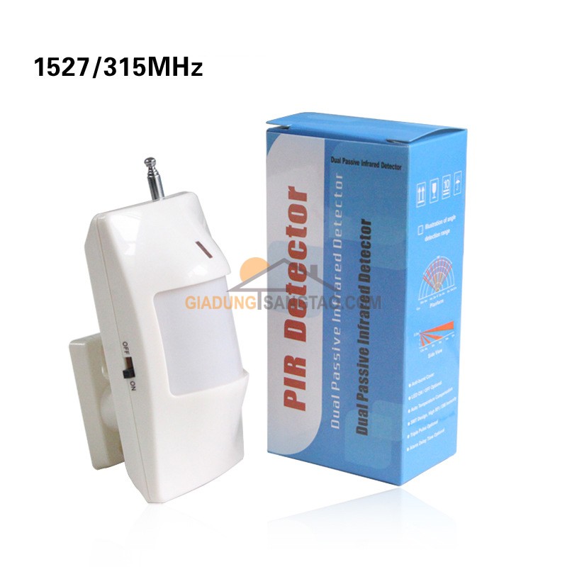 Mắt thần cảm biến chuyển động hồng ngoại phát sóng RF 315 và RF 433Khi dò thấy sự chuyển động của thân nhiệt phát ra từ cơ thể con người thiết bị sẽ lập tức kích hoạt và phát sóng ra sóng RF với tần số 315 hoặc 433 tới các thiết bị an ninh như: bộ báo động trung tâm ( rồi từ bộ báo động sẽ báo tới điện thoại của bạn) , loa báo động học lệnh ( khi nhận được sóng từ mắt thần gửi tới loa sẽ kêu inh ỏi khiến trộm hoảng sợ mà bỏ chạy ), hoặc công tắc điều khiển từ xa học lệnh RF để bật đèn dọa trộm khi có đột nhập trái phép.