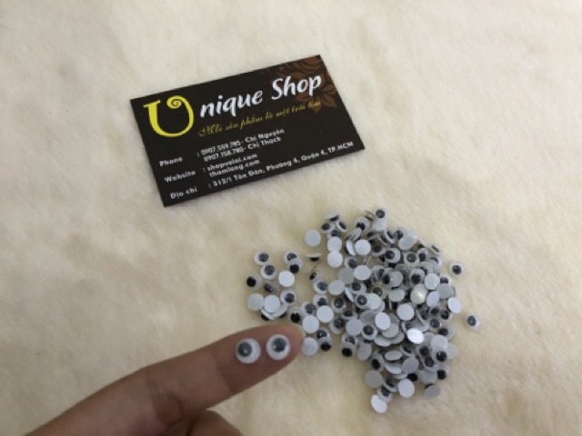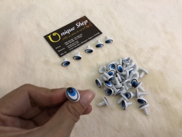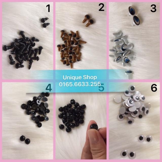 - Mắt thú có chất liệu bằng nhựa, bóng, có thể soi gương.- Dùng để làm mắt thú móc len, mắt thú nhồi bông treo nôi, búp bê ... rất tiện dụng.