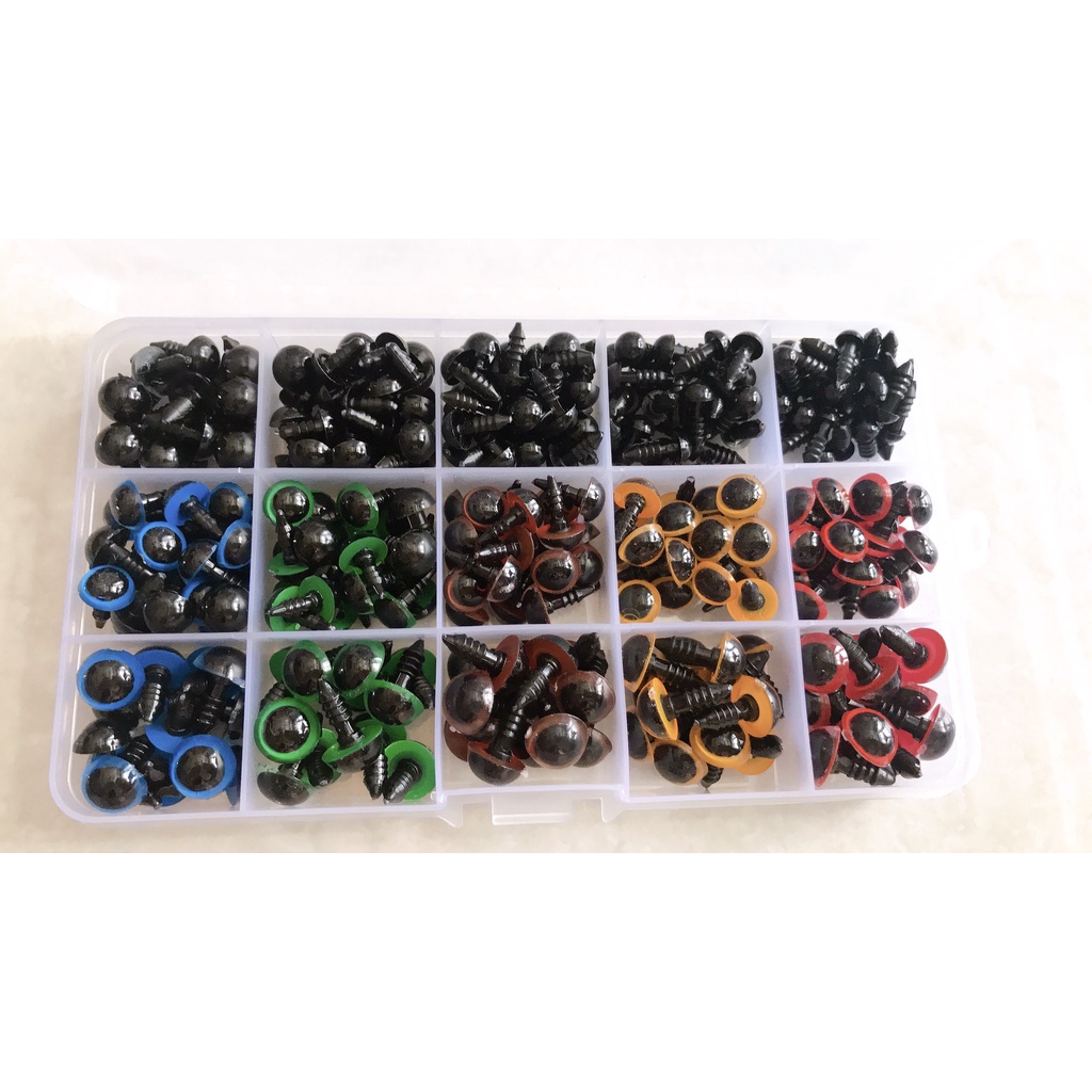 Mắt thú gắn chốt nhiều màu gói 10 cặpmàu vàng, xanh lá, xanh dương, đỏ, nâu, đen