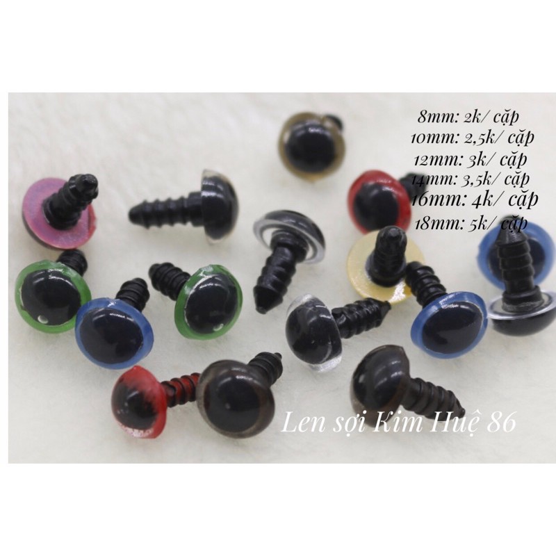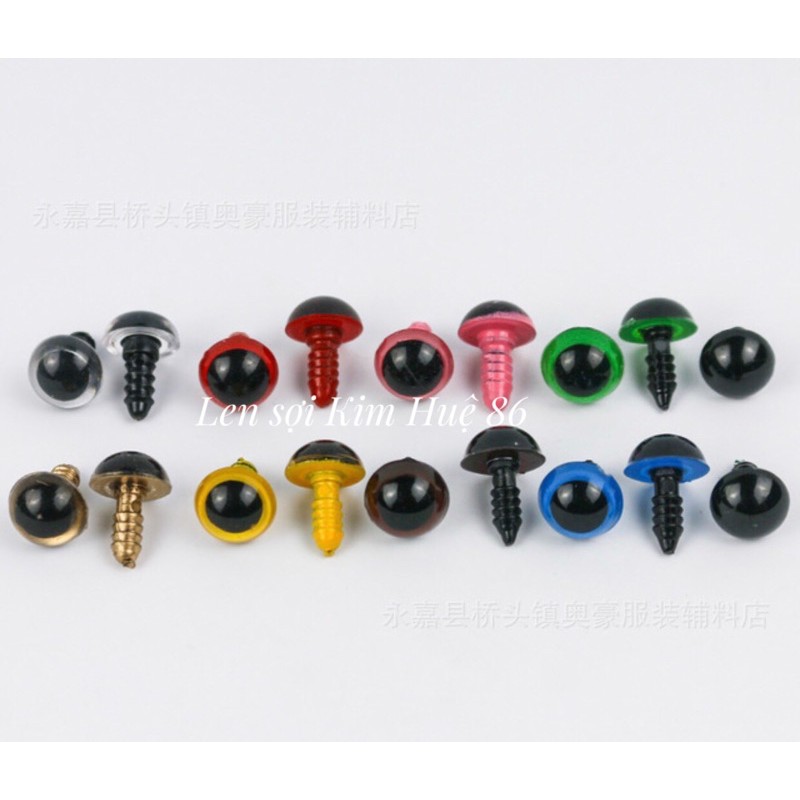Mắt thú màu có chốt kèm theo gồm các màu: màu trong suốt, màu đỏ, màu hồng, màu xanh lá, màu vàng gold, màu vàng, màu nâu, màu xanh dương.Kích cỡ: 8mm/10mm/12mm/14mm/16mm/18mm