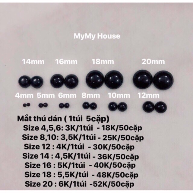 Sở thích & Sưu tầm > Dụng Cụ May Vá || Mắt thú tròn dán ( 1 túi 50 cặp )Còn hàng
