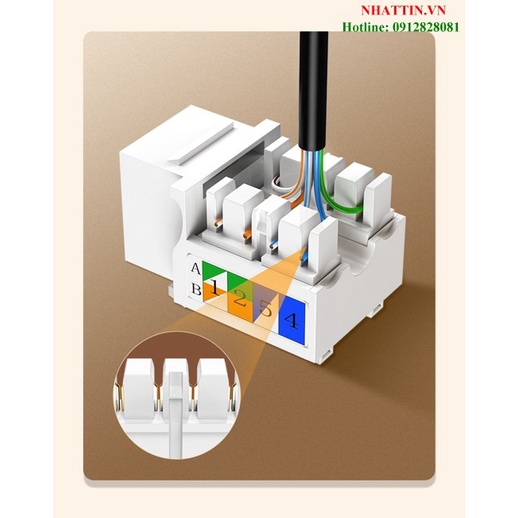 Hạt mạng RJ45 âm tường Cat6 chuẩn 8P8C 1000Mbps Ugreen 80178 cao cấpHạt mạng âm tường Ugreen 80178 Ethernet Category (Cat6) tương thích với các mặt âm, jack cắm RJ45 Keystone Category CAT6 với 110 đầu nối kiểu đục lỗ, thiết kế cổng góc 45 độ giúp dễ dang kết nối với cáp mạng, tương thích với cả kiểu dây T568A và T568B