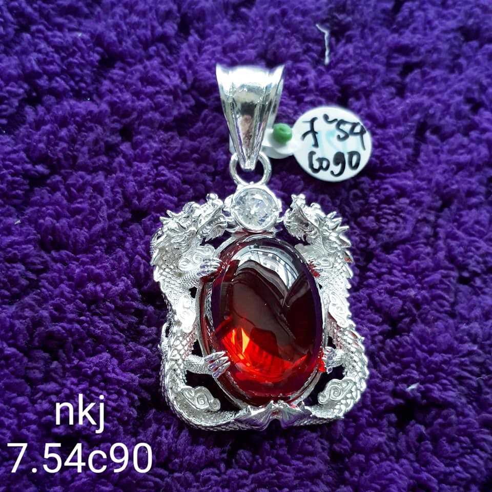 MẶT VÒNG CỔ NAM BẠC TA HÌNH RỒNG QUẤN QUANH ĐÁ ĐỎ TRỌNG LƯỢNG 7.54 CHỈ