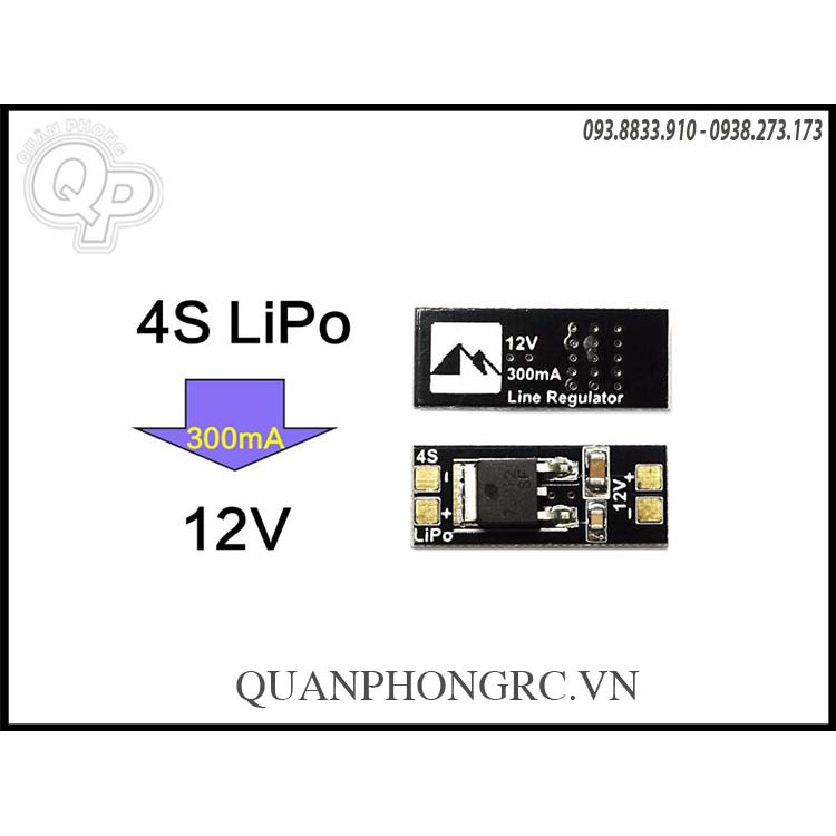 Mô tả:Đa số quadcopter sử dụng pin 2 ~ 4S LIpo, nhưng hầu hết các điện áp hoạt động của camera là 7 ~ 13V, sử dụng bộ điều chỉnh tuyến tính này có thể cung cấp 12V đến camera trực tiếp từ một pin lipo 4S.