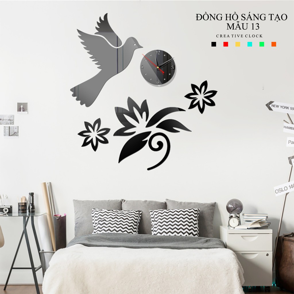 [Mẫu 02 đàn bướm ] Đồng hồ dán tường mika cao cấp , đồng hồ trang trí decor nhà cửa, quán cà phê, trà đá
