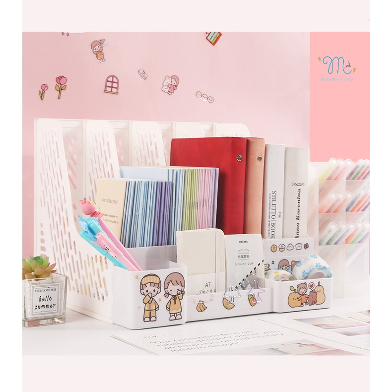Nhà cửa & Đời sống > Sắp xếp nhà cửa > Kệ sách để bàn || [MẪU 2] Kệ sách 4 ngăn màu trắng chắc chắn có hộc đựng bút viết + tặng stickerCòn hàng