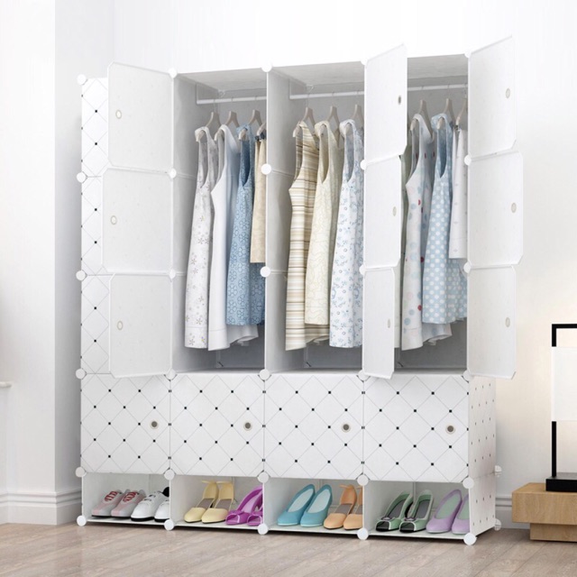 Nhà cửa & Đời sống > Nội thất > Tủ bếp || MẪU 2019- TỦ NHỰA QUẦN ÁO LẮP GHÉP 16+4 Ô GIÀY SÂU 47cm. Tặng 3 móc treo đồ ( thân trắng caro kẻ toàn tập).Còn hàng