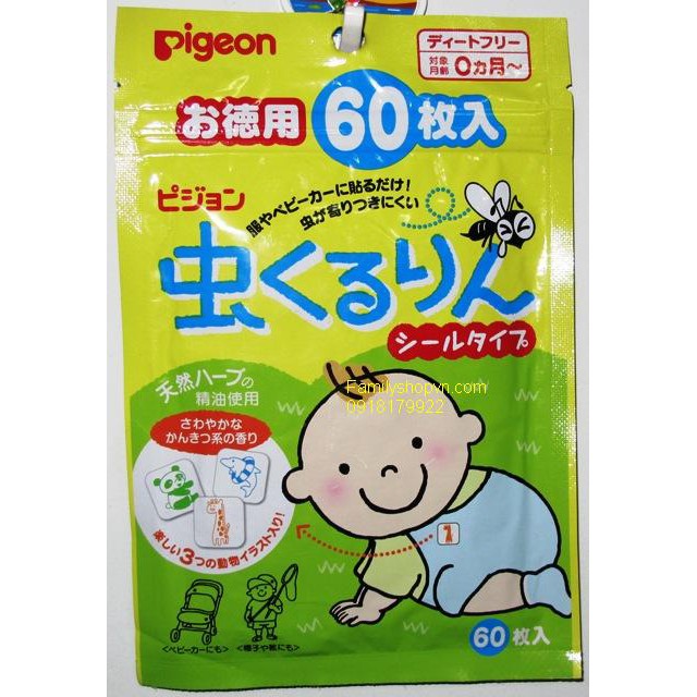 [Mẫu 2020] Miếng dán chống muỗi Pigeon Nhật Bản (60 miếng )- 100% Authentic