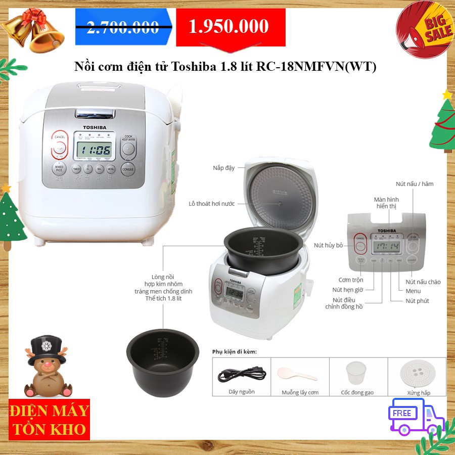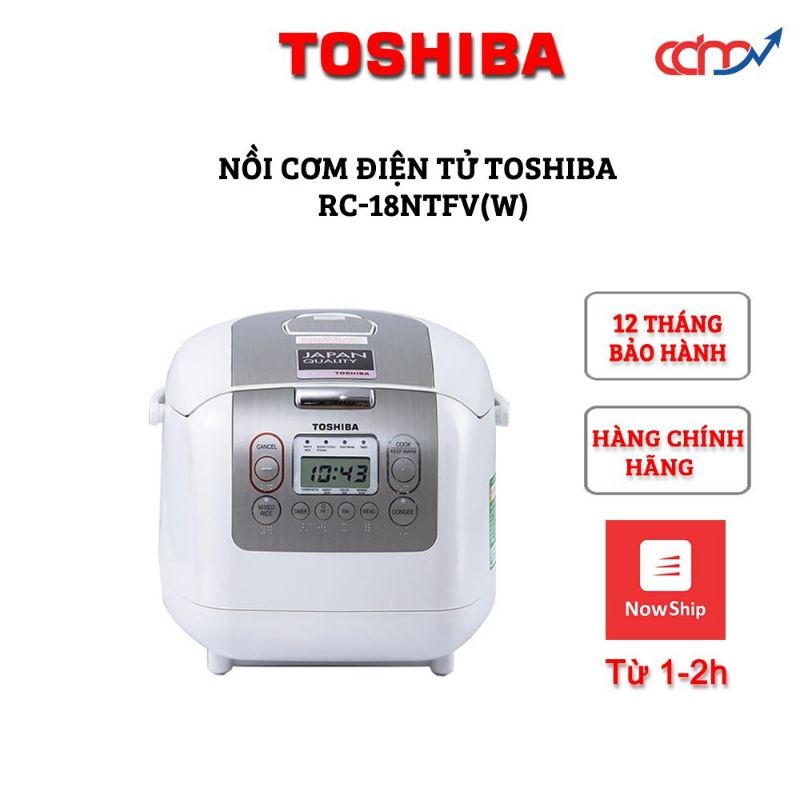 [Mã ELHADEV giảm 4% đơn 300K] [Mẫu 2021] Nồi cơm điện tử Toshiba 1,8 Lít RC-18NTFV(W) Xuất xứ Thái Lan
