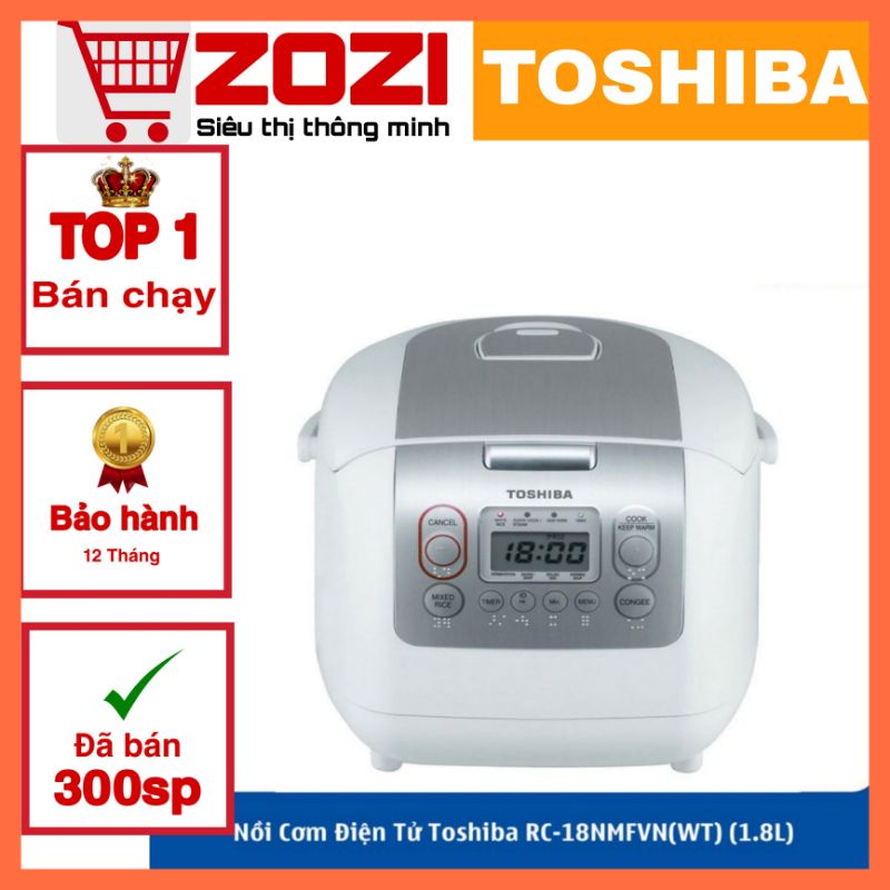 Thiết Bị Điện Gia Dụng > Đồ gia dụng nhà bếp > Nồi cơm điện || [Mã 273ELHA100K0 hoàn 7% đơn 500K] [Mẫu 2021] Nồi cơm điện tử Toshiba 1,8 Lít RC-18NTFV(W) Xuất xứ Thái LanCòn hàng