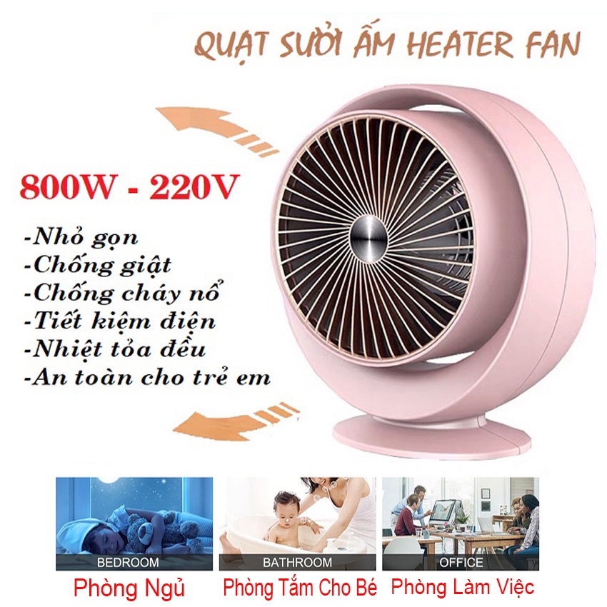 - Quạt có công suất 800W đủ để sưởi ấm phòng có diện tích tới 15m2 nhưng lại có kích thước khá nhỏ gọn, phù hợp sử dụng trong phòng ngủ hoặc văn phòng làm việc.