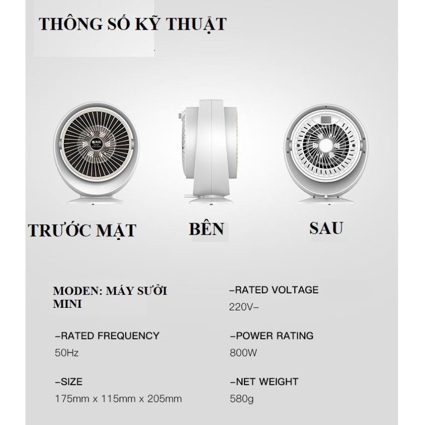 (Mẫu 2021) Quạt sưởi mini 2 chiều để bàn Heater Fan công suất 800W, Máy sưởi ấm chống lật Công Nghệ Số BV