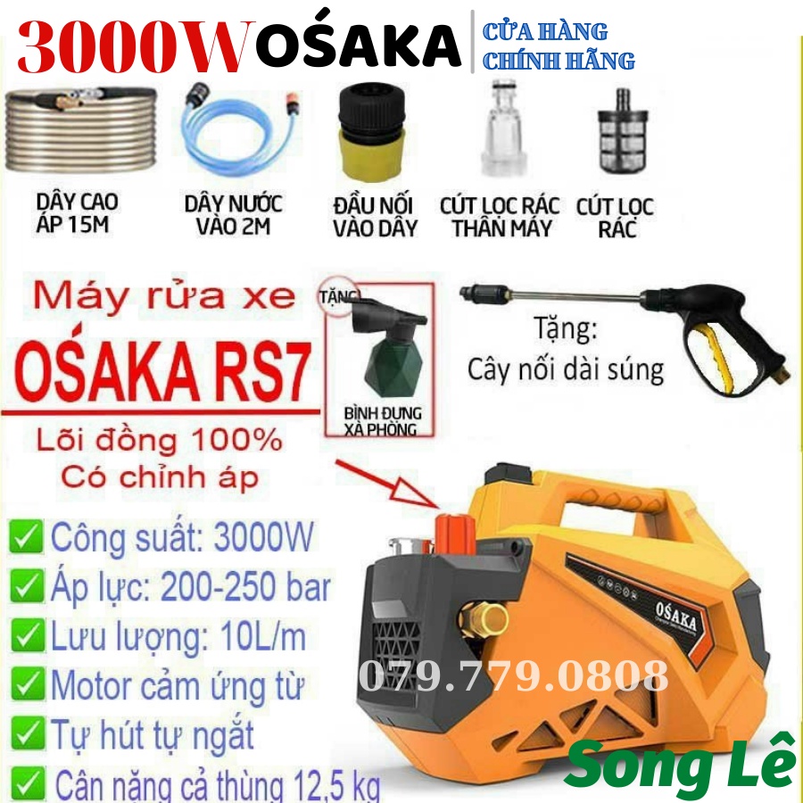 [Mẫu 2022] MÁY RỬA XE CAO ÁP OSAKA NHẬT BẢN Rs7 3000W - Đồng 100%