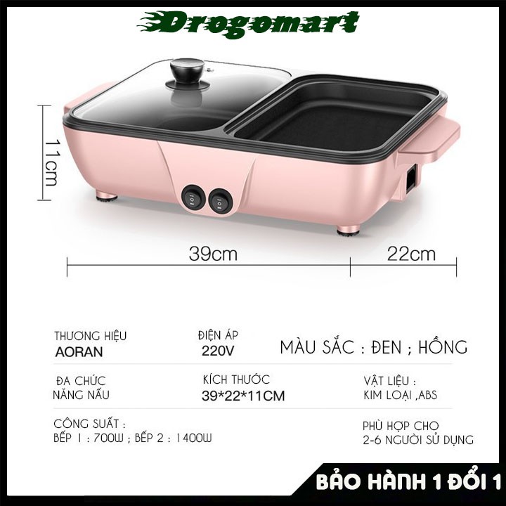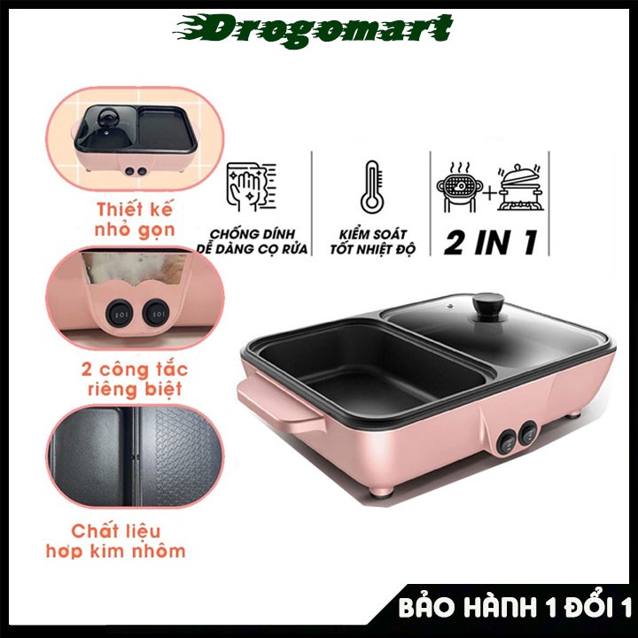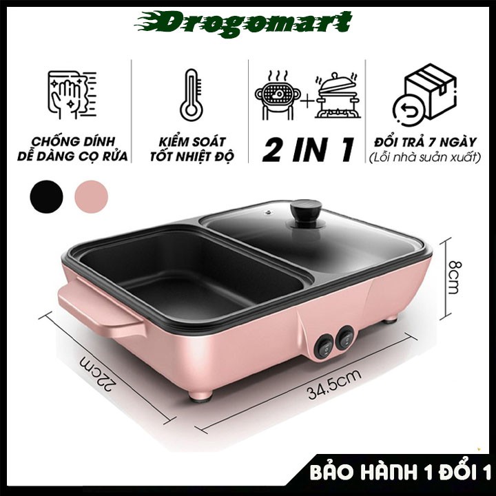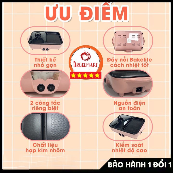 [Chọn Màu] Bếp lẩu nướng 2in1 đang năng, Chống dính cao cấp,Thiết kế kiểu dáng Hàn Quốc nhỏ gọn tiện lợi