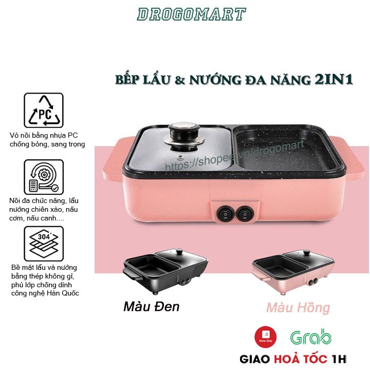 Thiết Bị Điện Gia Dụng > Đồ gia dụng nhà bếp > Nồi nấu đa năng || [Chọn Màu] Bếp lẩu nướng 2in1 đang năng, Chống dính cao cấp,Thiết kế kiểu dáng Hàn Quốc nhỏ gọn tiện lợiCòn hàng