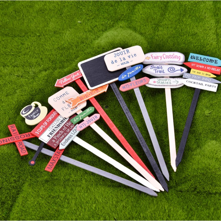 Mẫu biển báo bằng gỗ dùng trang trí tiểu cảnh, chậu cây, DIY