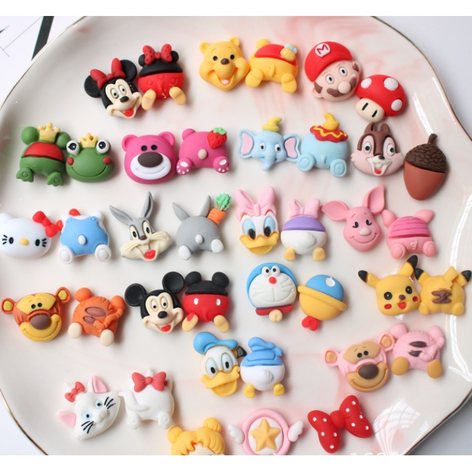 Kích thước : 1.5 x 2cm (vui lòng xem chi tiết ảnh từng mẫu) thích hợp dùng gắn #Jibbitz, kẹp tóc, ghim cài áo, DIYChất liệu: nhựa dẻo