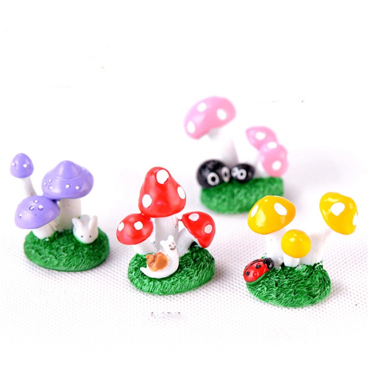 Mẫu cụm nấm với các con vật nhỏ xíu xinh xắn dùng trang trí tiểu cảnh, terrarium, DIY