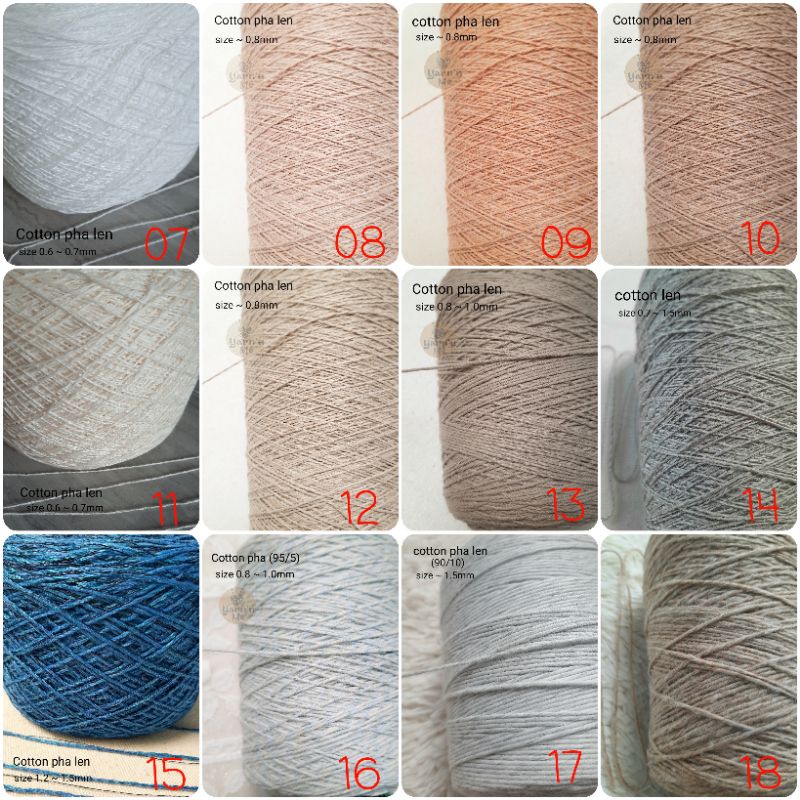 Cỡ sợi: tùy màu, chi tiết trên hình.