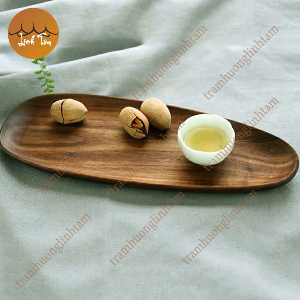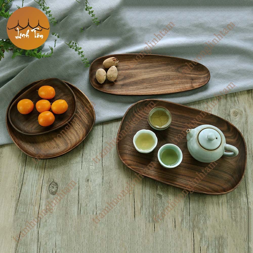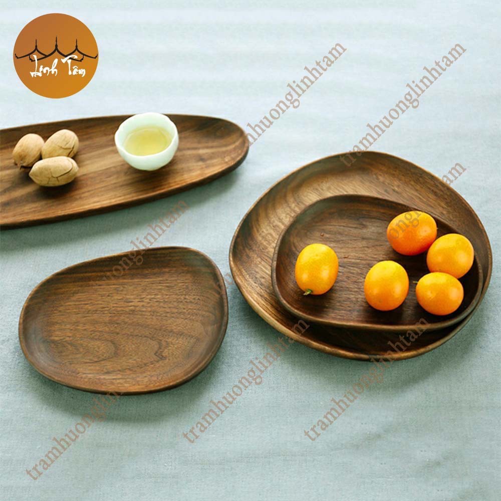 [Nhiều mẫu] Đĩa gỗ óc chó nguyên khối màu nâu đựng trà bánh đồ ăn decor bàn ăn