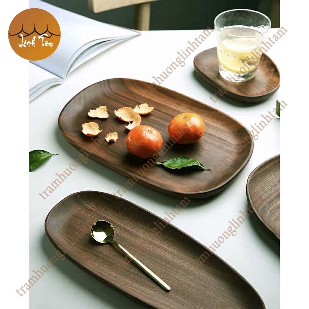 Giới thiệu [Nhiều mẫu] Đĩa gỗ óc chó nguyên khối màu nâu đựng trà bánh đồ ăn decor bàn ăn