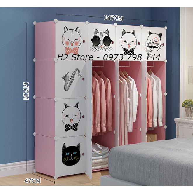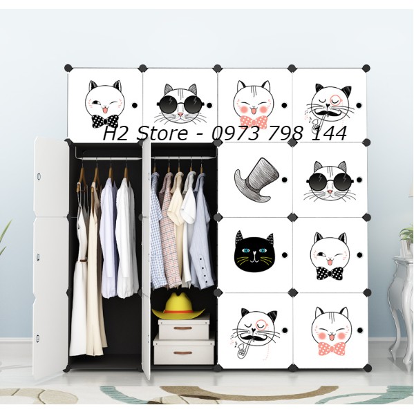 [MẪU ĐỘC] TỦ NHỰA LẮP GHÉP 16 Ô CỬA MÈO MŨ ĐỂ ĐỒ ĐA NĂNG THÔNG MINH sâu 47cm