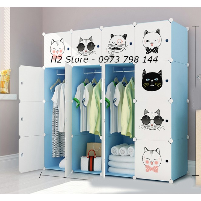 Giới thiệu [MẪU ĐỘC] TỦ NHỰA LẮP GHÉP 16 Ô CỬA MÈO MŨ ĐỂ ĐỒ ĐA NĂNG THÔNG MINH sâu 47cm