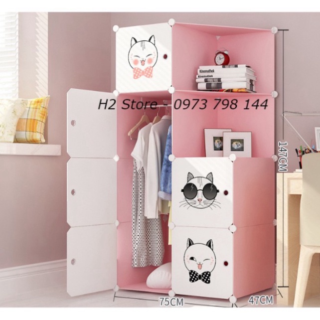 [MẪU ĐỘC] TỦ NHỰA LẮP GHÉP 8 Ô (GỒM 2 KỆ GÓC) CỬA MÈO NƠ DIÊU YÊU TREO ĐỒ ĐA NĂNG THÔNG MINH sâu 47cm🎯 Kích thước sau khi lắp: cao 1m50, ngang 75cm, sâu 47cm